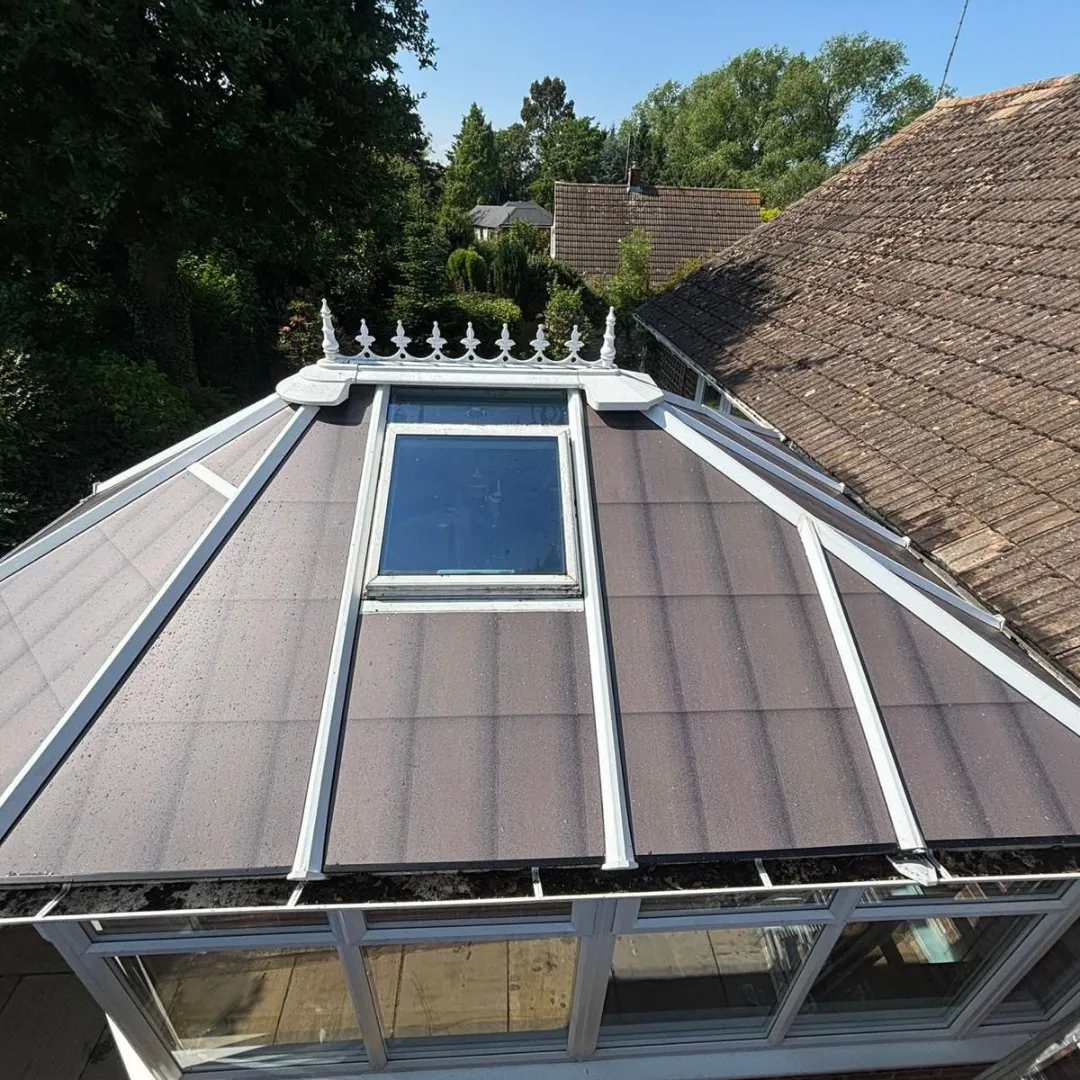 Panel X manufactures and installs insulated conservatory roof panels in the UK. Their system replaces traditional glass or polycarbonate roofs, offering better insulation, lower heat-gain/heat-loss and a tiled-effect finish.